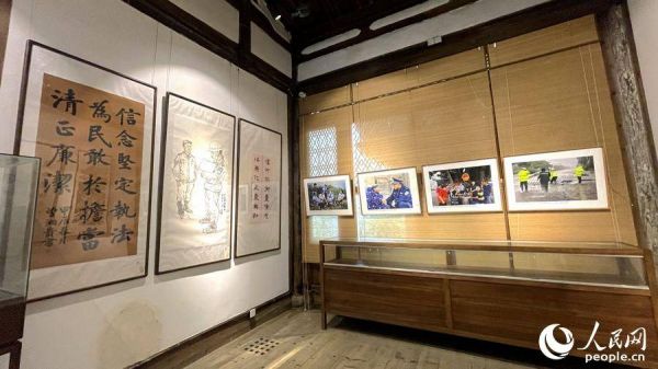 现场展出的书法、漫画、摄影作品。人民网 谢星宇摄