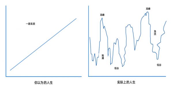 实际上真实的人生,有急流有险滩,有高峰有低谷。