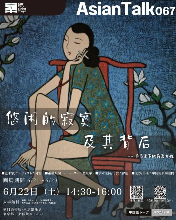 本次,画家见灵将于银座单向街书店举行为期三天的个人画展。她将与自由艺术家、宋庄资深策展人蓝京华一同来到单向街书店·东京银座店,分享她在宋庄的生活历程;她也将从自己的经验出发,讲述自己是如何在这个充满活力的艺术社区中探索属于自己的艺术表达方式,并逐渐成长为一名备受瞩目的艺术家的。