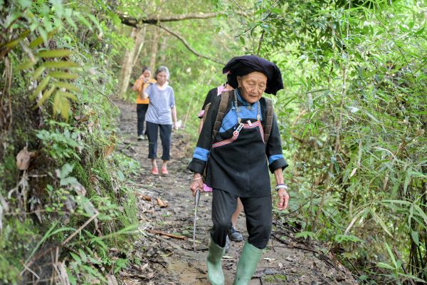 有时候为了采集更珍贵的药材,她需要奔赴更偏远的深山。她哼起熟悉的瑶族歌谣,喝着自酿的米酒,走向大山深处,花上六七个小时,来回近50公里,获得满满一背篓收获。
