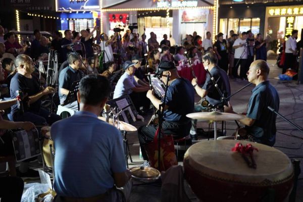 观众们被选手们的表演深深吸引,不时爆发出阵阵掌声和喝彩声。他们或跟着节奏轻轻拍手,或随着剧情轻声叹息,或因为某个精彩瞬间而大声叫好。广场上的氛围被推向了高潮,仿佛变成了一个大型的狂欢派对。图为现场演奏团。