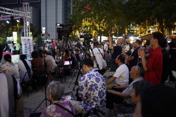 夜幕下广场打响戏曲擂台赛,引无数市民观看叫好