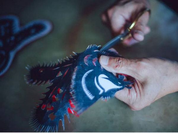 他的右手快速而精准,插刀、抽刀的动作来回变换,犹如一场精心编排的舞蹈,优雅而有力。刀随心走,心随意连,手指翻转之间,一只翱翔于云霄之间的凤凰逐渐显现,羽毛的细腻、姿态的优雅,都展现得淋漓尽致。