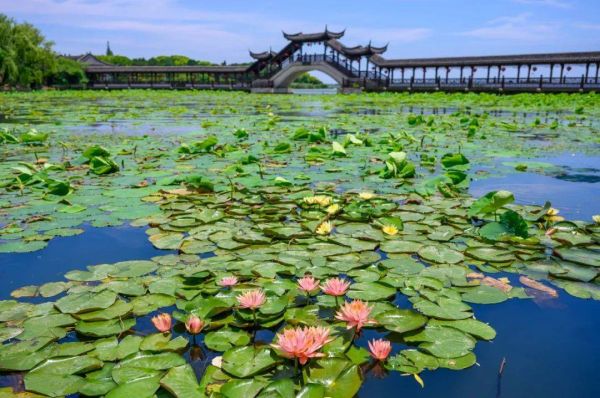 荷花娉婷绽放,湖水小荷蜻蜓,构成了昆山夏日最幽情逸趣的画面