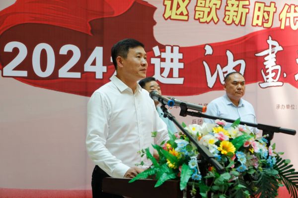 塔城地委委员、组织部部长迟国君在致辞中说:“2024走进油画塔城新疆美术作品展的作品充分展现了大美新疆的雄阔画卷、民族团结的感人场面,特别是展现了新疆人民在党的坚强领导下,经济、社会、文化等方方面面取得的巨大变化和伟大成就,这必将鼓舞广大美术工作者更好担负起新的文化使命,努力创作出更多反映伟大时代的优秀作品。”
