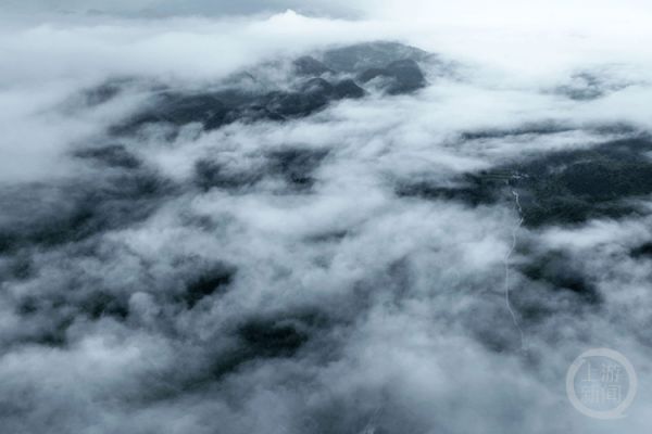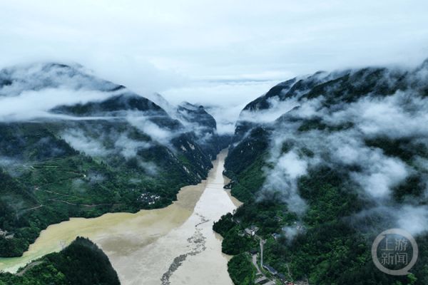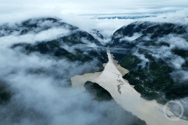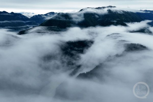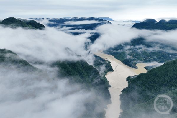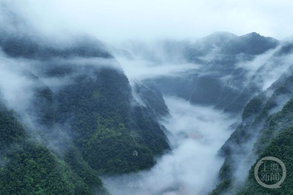 6月28日,一场大雨过后,重庆市酉阳土家族苗族自治县苍岭镇大河口阿蓬江流域升腾的云雾和连绵的群山形成一幅美丽的画卷,宛如仙境。