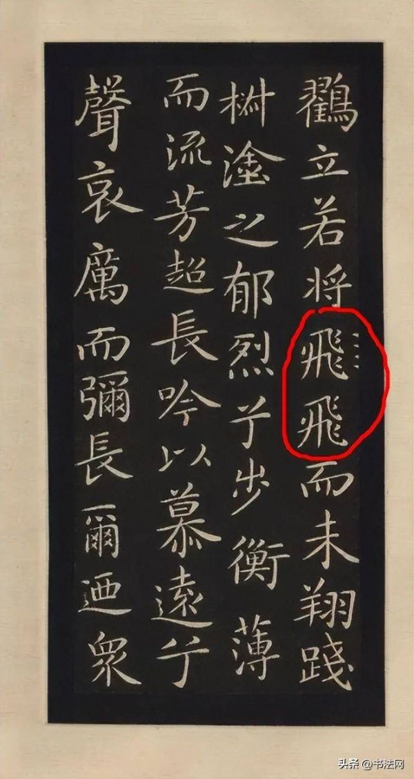 第四种处理方式可以针对写错字、写多字的情况,它就是错字或多的字旁边点上几个(一到十个不等)小点。如《张黑女墓志》、王羲之《黄庭经》、赵孟頫《高峰和尚行状》等。但有一个问题需要注意,就是有些“异体字”本身就多了一点,这就是不是批改的痕迹,如赵佶《瘦金千字文》的“解”字、赵孟頫《三门记》的“土”字。