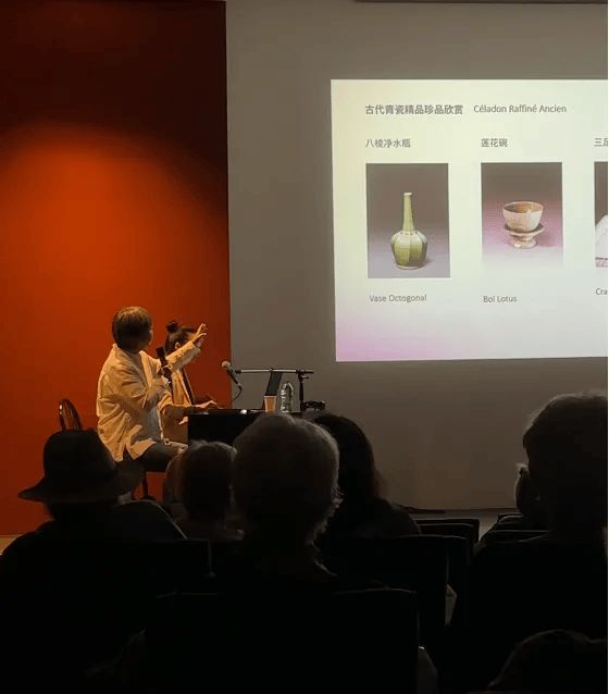 大师课现场,既有创作作品的欣赏,又有古陶瓷的介绍,更有施珍个人对越窑青瓷创新传承的深度解析。这些有趣话题,激起了法国艺术家极大的兴趣,“中国千年的越窑青瓷,融入了西方文艺多彩的世界之中,非常美妙。”来自鲁昂的一位艺术家说,自己第一次欣赏了中国千年越窑青瓷的传承作品,聆听了越窑青瓷的历史与发展历程,这样的大师课,收获很大,令人难忘。