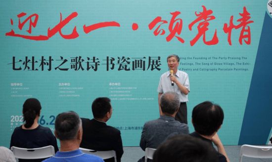 中新网上海新闻6月29日电(李玉 于俊)由浦东新区川沙新镇人民政府、虹口区作家协会、上海大学上海美术学院建筑系主办的“迎七一·颂党情——七灶村之歌诗书瓷画展”26日在七灶美术馆揭幕。