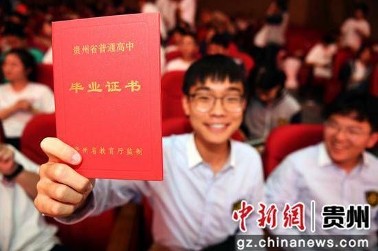 6月26日,在贵阳市南明甲秀高级中学2024届高三学子毕业典礼现场,一名高三年级学生展示贵州省普通高中毕业证书。