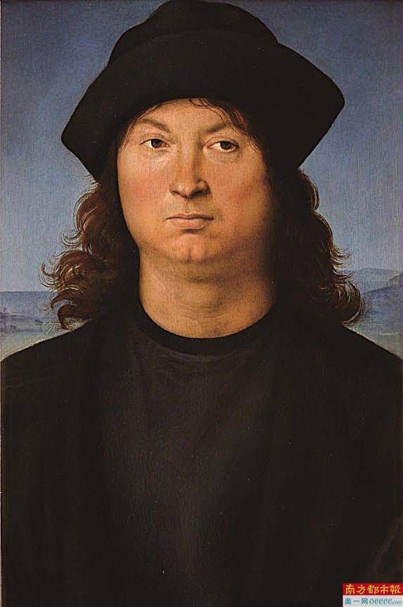 拉斐尔的《男子肖像》是在1911年进行修复后才显露出原貌的;在此之前,画中人物头戴不同的头饰,身穿厚重的毛皮外衣,外面罩着一件薄薄的浅色衬衫。这幅画也曾被评论家称为霍尔拜因的作品,后来又被称为佩鲁吉诺的作品;最近,这幅画又被追溯到乌尔比诺艺术家的早期作品,当时仍受到佩鲁吉诺的影响。作为拉斐尔风格形成初期的作品,人物形象塑造柔和,画面宁静,流露出感情。