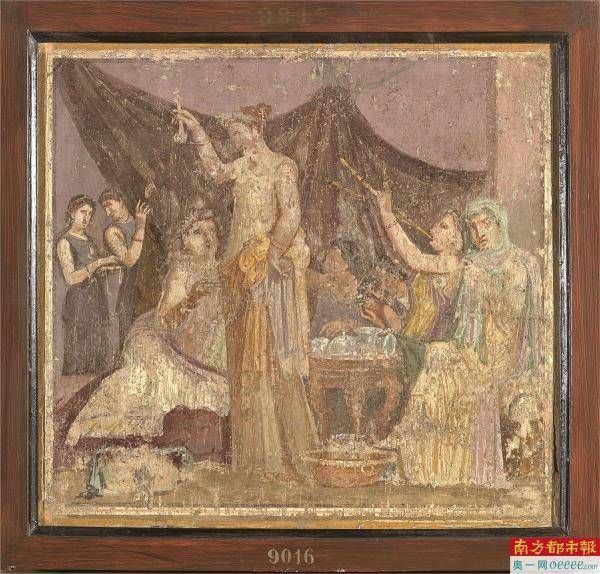 《女性宴会场景的湿壁画》