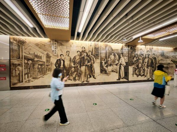 在7号线虎坊桥站,有市民站在《浩气宣南》壁画前,端详良久,“我知道鲁迅先生的故居就在附近,但真没想到,历史上这么多仁人志士,都在宣南这一带留下过足迹。”