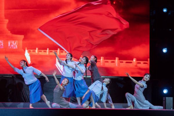7月2日,上海师范大学音乐学院学生表演歌舞诗剧《绣红旗》。新华社记者 王翔 摄