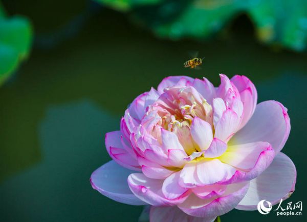 碧叶流翠,粉荷飘香。人民网 程明辉摄