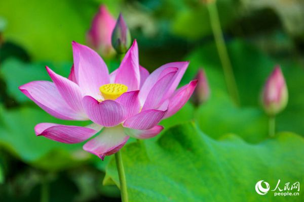 灼灼荷花出水中。人民网 程明辉摄