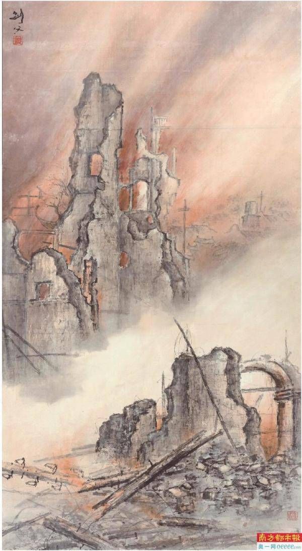 《高剑父曾这样绘画淞沪抗战:烈焰与上海断壁残垣之痛》陶喻之