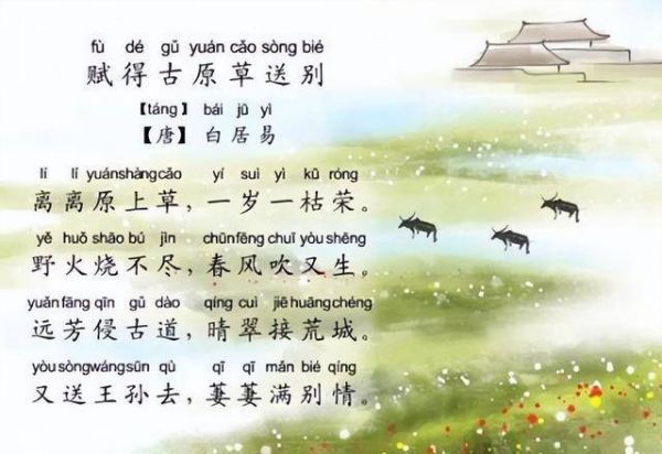 离离原上草,一岁一枯荣。野火烧不尽,春风吹又生。