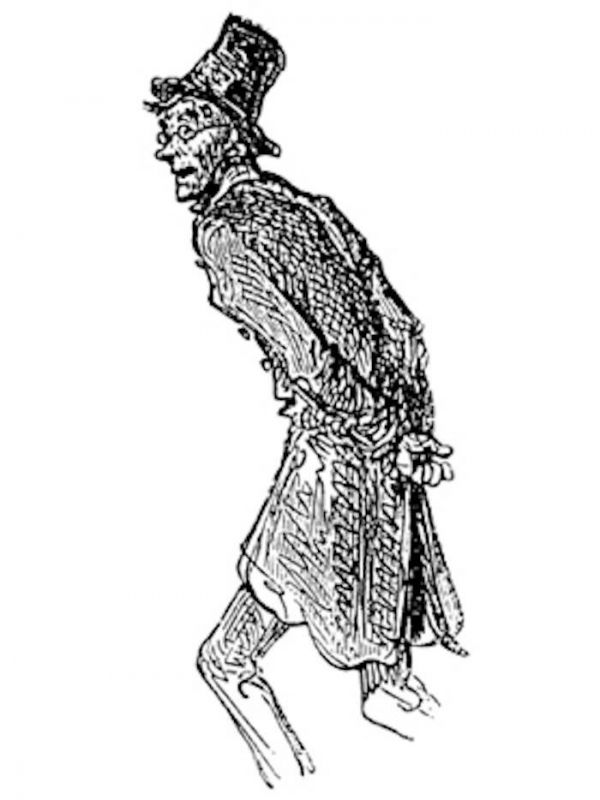 哦!他可是一个要从石头里榨出油来的人,这个私刻鲁挤!他真是一个善于压榨、拧绞、掠取、搜刮、抓住不放,而又贪得无厌的老恶棍呐!他又硬又锐利,好像一块打火石似的,可是钢棒从来没有在他上面打出慷慨的火花来;而且他隐秘自守,默不作声,孤单乖僻,好像一只牡蛎。他内心的冷酷使他苍老的面貌蒙上了一层严霜,冻坏了他的尖鼻子,冻皱了他的面颊,冻得他脚步直僵僵的,冻得他眼睛发红、薄嘴唇发紫,冻得他用叽叽嘎嘎的声音说尖酸刻薄的话。他的头上是一层皑皑的白霜,两撇眉毛和坚硬的下巴也是这样。他走到哪里,就把自己身上的低温带到哪里;在大热天里,他把他的事务所弄得冷冰冰;到了圣诞节这天,他也不升温,让那儿解冻。(吴钧陶译《圣诞颂歌》,平明出版社,1955年;江西人民出版社,1983年;安徽人民出版社,2013年,第8-9页;译林出版社,2019年,第3页)