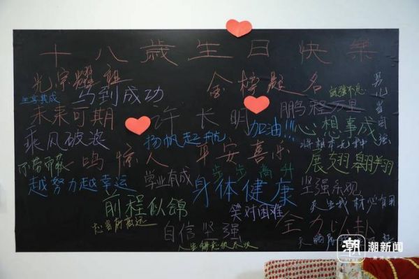走进许同学家,客厅墙上的一块大黑板吸引了记者的目光,上面写着:许长明十八岁生日快乐、男儿当自强、全力以赴、未来可期……满满一黑板的粉笔字,寄托着父母对许同学的爱,“今年5月,儿子还在备战高考。周末学校放假,想着给他一个生日惊喜,还买了蛋糕,挂了气球,来一点仪式感。”许妈妈笑着回忆。