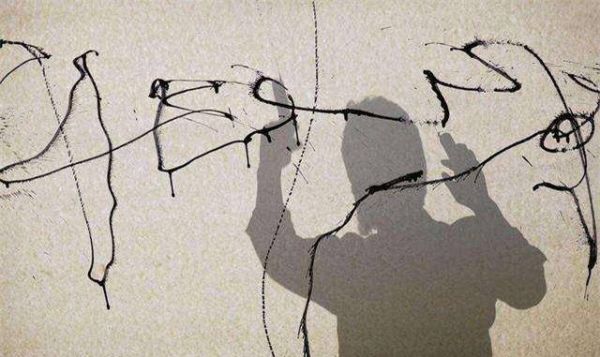 邵岩是现代的一位书法家,他竟然能用注射器替代毛笔,以汩汩墨流进行一系列的书法创作。