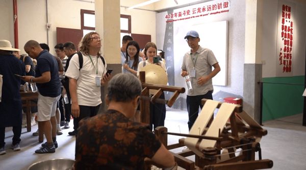 海宁周王庙镇云龙村,是当地迄今为止蚕桑业保存最完整的村庄,采风队伍亲手体验了桑蚕丝手工艺,非遗“蓝印花布彩拷”等,被中国传统文化深深吸引。