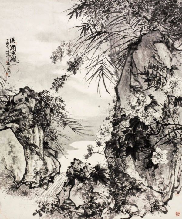 韩斌的画沿袭了传统中国画中的静谧感,但又饱含着热烈的情绪,笔墨之间“意”的表达便是如此,经营构置之间生机勃勃、其野芃芃的花草树木、山石水流都是生命中的意气风发,蓬勃气象,也是画家对绘画的挚爱。