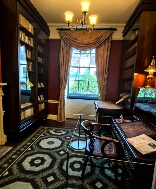 狄更斯的故居坐落在一排普通民居中,并不显眼。屋内保留着当年维多利亚风格的陈设,没有常见的围栏,人们可以走在他的房间各个角落,去感受他曾经的生活!我在那张他曾创作出无数作品的书桌旁,驻足了很久