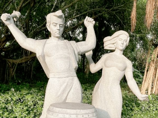 巧匠能工雕石像,弯眉笑眼酒窝深。