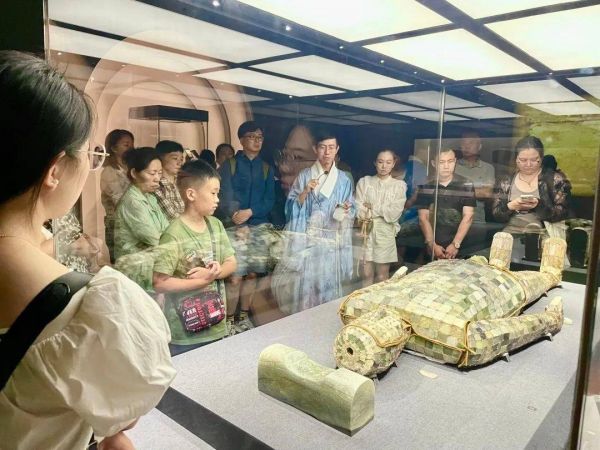 “我就在这附近上班,趁着午休时间过来,看一会儿展再回去补个午觉,下午好精神饱满地工作。”当记者遇到王薇时,她正站在玉璧前细细观赏。每次只看几个展品,但每一个都看得非常仔细,这已经成为她近年来在闵博观展的习惯,“闵博现在特别受欢迎,工作日中午过来人会少一些,一个展我可以分三次慢慢看,中午没有讲解,我就扫码看展品信息。”如今流行的“午间一小时”休闲方式,在她的生活中得到了具象化的体现。