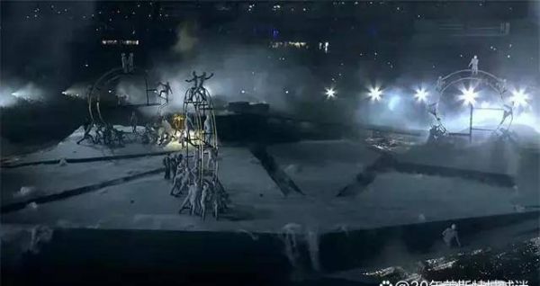 闭幕会外星人【意译】表演,他们如璀璨金环翻飞于广袤的“世界地图”,令人困惑其是否彻底颠覆了原设计,直至终场时分才临时组合杂技团以填补时长。如此纷乱无章之行为无疑令整场策划引发质疑。