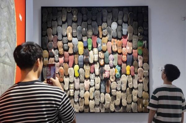 东方网8月12日消息:近日,上海艺术家杨烨炘在上海M50艺术区举行个人展览《我留在这个世界上的痕迹》,本次个展全部以“鞋底”作为艺术符号。