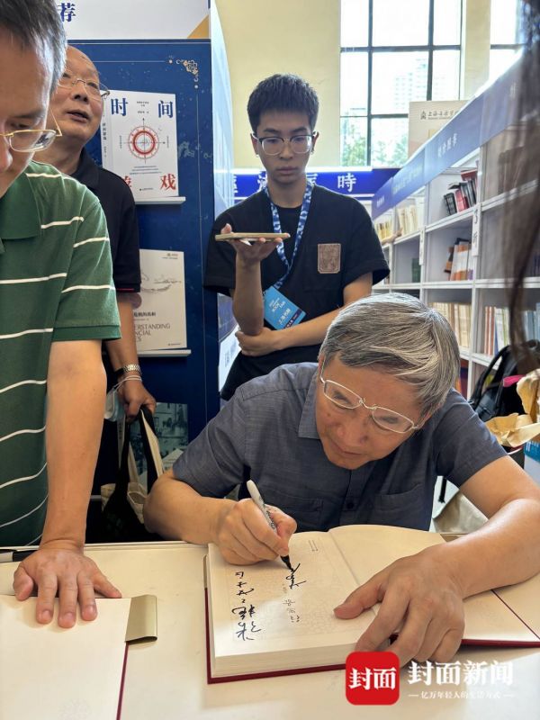 演讲环节之后,葛教授又耐心为排起长龙队伍等待的读者签名。由于人多,该场活动全部时间结束还未签完,需要转移场地继续签名。不少读者希望他在书上除了签名还要写一句话,送给朋友或者孩子。出生于1945年的葛教授,头发大半灰白,被汗水打湿,背有点微微驼起,但他整个人精神矍铄,活力十足。他一笔一画认真为每一个排队的读者签好字,还会对读者笑着说“谢谢,谢谢”。出版社工作人员透露,这场活动结束后,葛教授又要马不停蹄赶往机场,飞往广州参加另外一场阅读推广活动。虽然时间紧张,但葛教授看到封面新闻记者在旁等候多时,还是欣然同意回答了采访他的几个问题。