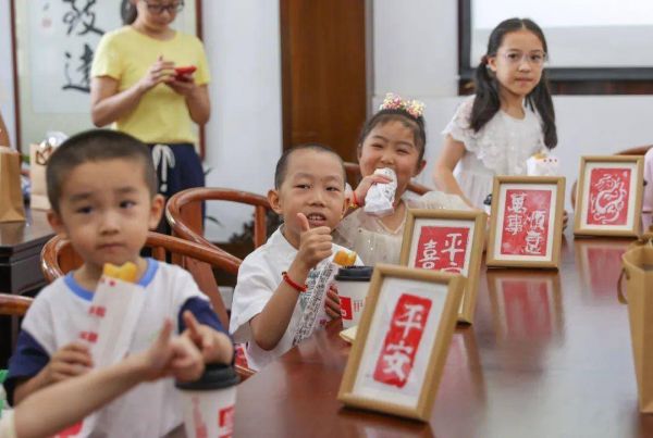 为了让更多的年轻一代和小朋友们加深了解英雄事迹,今天上午,上海方塔园还开展了一场以“纪念民族英雄李待问,非遗雕版拓印”为主题的亲子体验活动。工作人员以讲故事和问答等互动形式为孩子们讲述了民族英雄李待问的事迹,并教其如何制作雕版拓印。活动结束后,现场工作人员向亲子家庭分发了豆浆和油条。