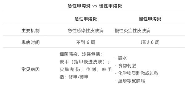 重要的是,它可以分为急性和慢性两种类型,主要区别在于病程的长短和病因。其中,急性甲沟炎通常由感染引起,表现为剧烈肿痛、化脓,慢性甲沟炎则可能与感染无关,表现为持续的炎症和指(趾)甲生长异常。