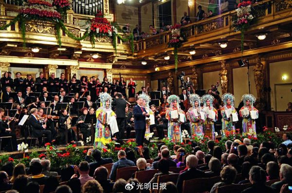 2014年,梅葆玖携弟子在维也纳金色大厅演唱《梨花颂》。叶金援摄