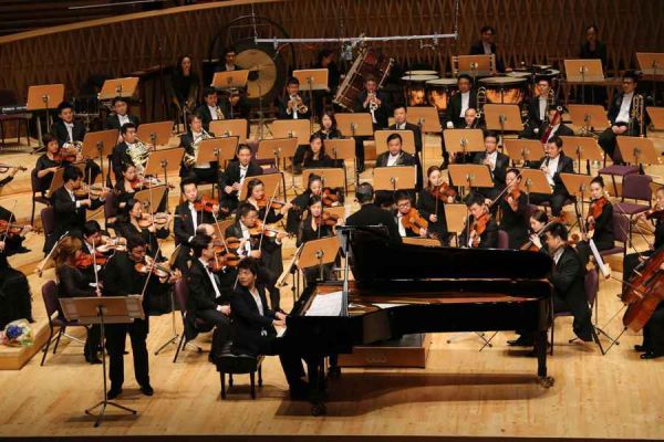 钢琴家郎朗与余隆执棒的上海交响乐团