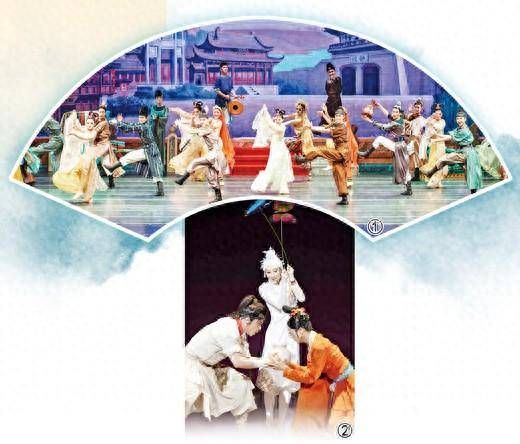 图①:舞剧《丝路花雨》剧照。 甘肃省歌舞剧院供图 图②:舞剧《孩儿枕·家和兴》剧照。中国东方演艺集团供图
