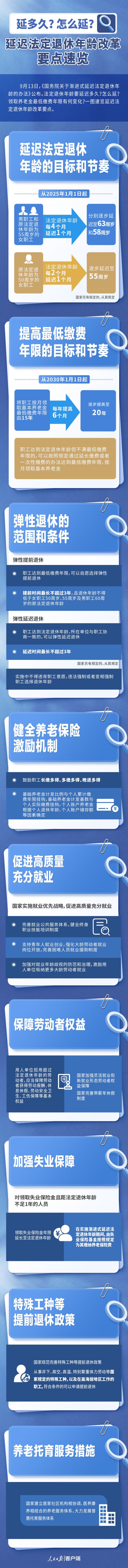 延多久?怎么延?一图速览延迟法定退休年龄改革要点