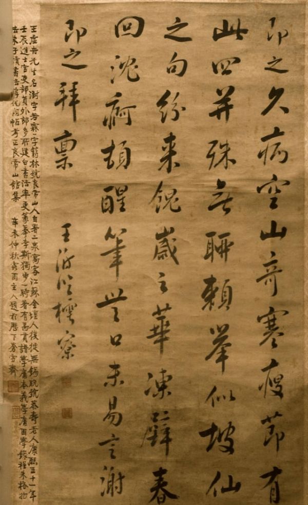 其实这幅画不是虚构的。华不注山这个名字出于《诗经·小雅·常棣》“常棣之华,鄂不韡韡。”“华”就是花,“鄂不”就是花蒂,“韡韡”就是美好的样子。意思就是说这座山就像底朝上的一个花蒂漂浮在水面上。以上的描述无非告诉大家,赵孟这个《鹊华秋色图》中是有客观景物做对象的,所以赵孟就在题跋中注释道“华不注最知名……其东则鹊山也”。为什么明明鹊山在华不注山的西面,而赵孟在题跋中把两座山的位置错位呢?乾隆皇帝认为赵孟犯了错误,所以把画封存了。而我认为不是赵孟错了,而是乾隆皇帝错了。乾隆皇帝虽然喜欢艺术,但是他真的不懂绘画,尤其是不懂元代以后文人画的写意画。