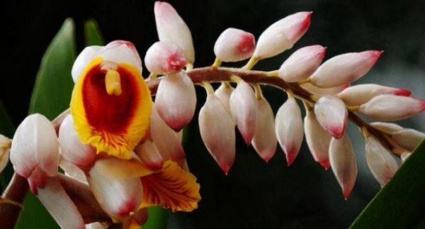 而在民间,豆蔻还有另一种别开生面的解释。豆蔻在民间又叫做“含胎花”,因为豆蔻在没开花的时候就是一个个饱满的花骨朵,宛如“含胎”一般,看起来圆嘟嘟的十分惹人喜爱。尤其是红色的豆蔻,在这里是最明显的。而且从红豆蔻花的结构来看,是由合并起来两半并蒂花蕊构成的,更为其增添了几分男女之间互为伴侣的情意。有诗云“结就同心蕊”,所寄予的就是男女之间的爱情,这里的“同心蕊”指的就是红豆蔻的并蒂花蕊。
