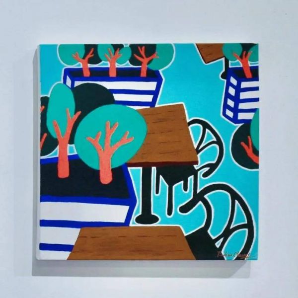 至于那幅描绘街角咖啡厅的《Corner cafe》,更是将张天尘对于生活细节的敏锐观察与温情表达发挥到了极致。画面中没有复杂的构图,也没有丰富的色彩堆砌,仅仅是几张简单的桌椅,几个绿植装饰,就勾勒出了一个温馨而惬意的场景。张天尘巧妙地运用远近关系和空间布局,让观者仿佛能够闻到咖啡的香气,感受到那份慵懒与舒适。这幅画不仅是对日常生活片段的捕捉,更是对简单生活美好瞬间的赞美,它提醒我们,在忙碌与压力之外,还有这样一些简单而纯粹的幸福等待着我们去发现和珍惜。