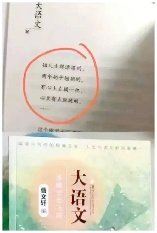 请问尔,这是想表达什么美好思想吗?如果不是《大语文》标明在外,我会认为这是黄色淫物,而且还是赤裸裸的、露骨的、毫无遮掩的!