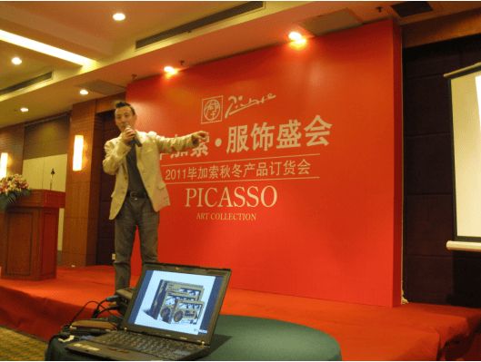 2010年10月,PICASSO毕加索服装盛会在上海隆重举办,服装界相关授权及合作方老总,知名商场老总等齐聚一堂。我的老朋友,广西柳州工贸大厦李总也到场了。我代表上海文化总会秘书长向来宾们分享毕加索PICASSO文创引发风潮的精典案例。