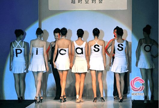 以上分享的是毕加索PICASSO文创引发风潮的几个案例,话又回到前面在杭州的海伦。中国国际丝绸博览会暨中国国际女装展览会2008年10月31日在杭州拉开帷幕。海论不遗余力的说服林董,在此次女装展览会上,宣传并发布毕加索公司向服装领域拓展的信息。实际当时林董还没有在女装上授权,但盛情难却,我和林董还是兴致勃勃的一同前往杭州。到杭州时已近傍晚,看到海伦在女装展览会现场忙着指挥布展。她见林董并没有带毕加索PICASSO女装前来,不免有些失望。但海伦急中生智,PICASSO超时空约会走秀时,在女模特的背后把PICASSO展示出来了。