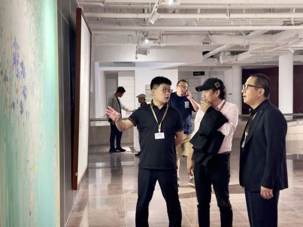 展览现场,参展嘉宾丁雷和曹淑海对部分作品进行了讲解,并与青岛九中美术班学子进行了精彩互动。双方就“AI技术冲击下美术发展的困境与出路”等话题进行了面对面的沟通与交流,拓展学子们的眼界和思维。