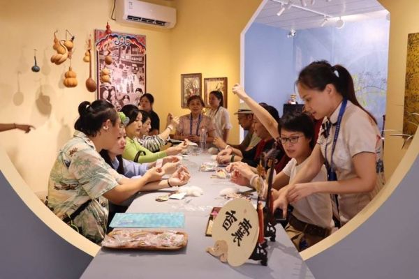 观众可体验“古船模型制作技艺”“套板葫芦制作技艺”“香囊制作技艺”等非遗项目,还能与网红民间艺术“漆扇”“超轻粘土”互动,现场观众可从中领略文体旅深度融合发展激荡出的生机与活力。
