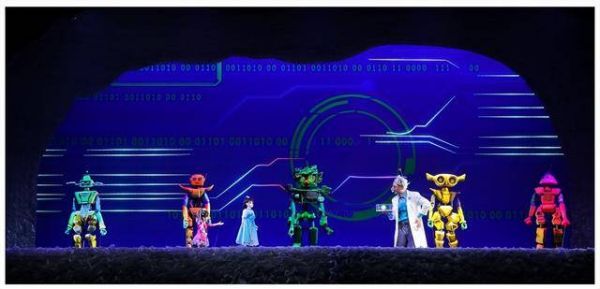 该剧是陕西民艺自有导演、自主制作、独立设计的一部大型音乐偶剧,融合了杖头木偶、背架式木偶等多种偶形,借助皮影、魔术等多维载体,并融汇了说唱等艺术表演形式。在偶形的运用中把观众喜欢的拟人化手段,以及多变、夸张等元素放大到极致,去贴合儿童的审美价值,呈现出儿童期盼的艺术效果。并通过大胆尝试多重空间并置,现代多媒体光影技术与非遗木偶技艺交互配合、自由切换,让观众有一种身临其境、设身处地的共鸣感与带入感。