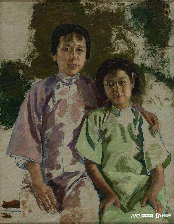 徐悲鸿《孙佩苍夫人与女儿画像》。
