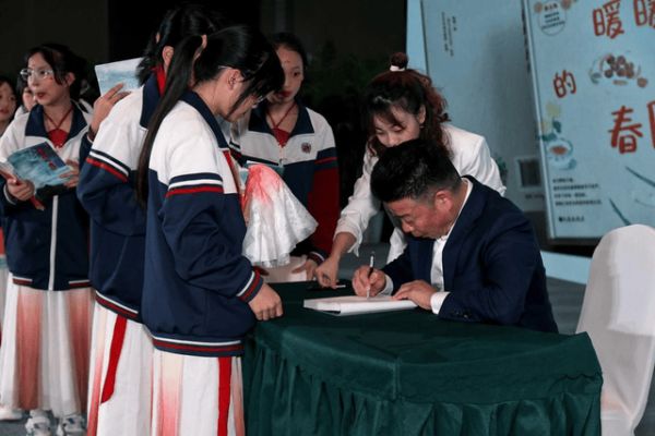 除了学生们喜爱文学和创作,大作家依然笔耕不辍。当天,四川省青少年作家协会主席王永忠,举行了《暖暖的春阳》新书发布会,引来学生们的“追星”。